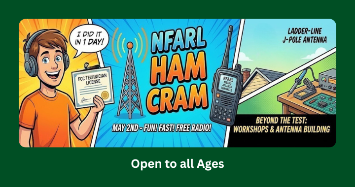 Are you ready to join the world of amateur radio? NFARL is hosting a special "Ham Cram" session designed to take you from zero to licensed in a single day! Why Join the Ham Cram? Accelerated Learning: Spend 6 hours in a classroom environment where we teach you the answers to the FCC Technician pool....Continue reading→