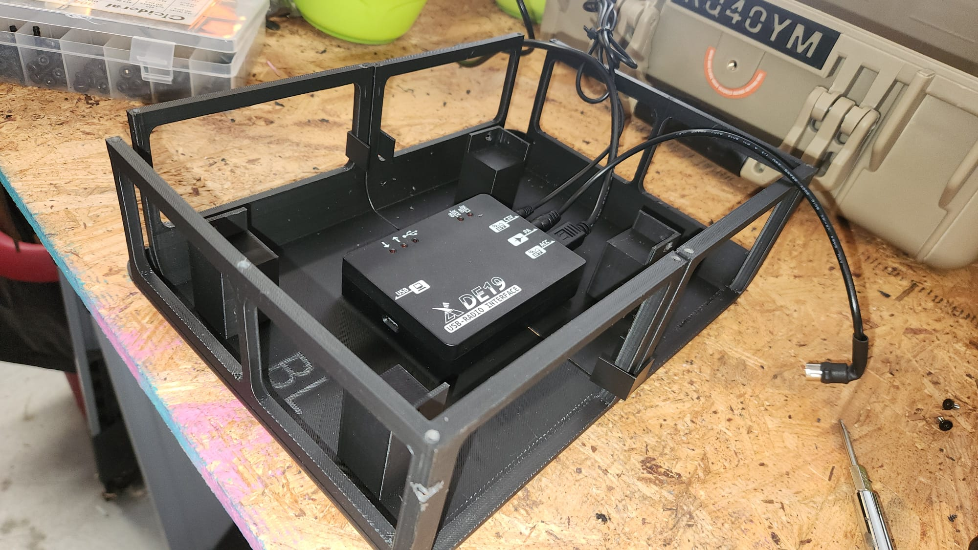 - SO-239 antenna port — via the printed HamRadioGoBox-Antenna-Socket.stl bracket