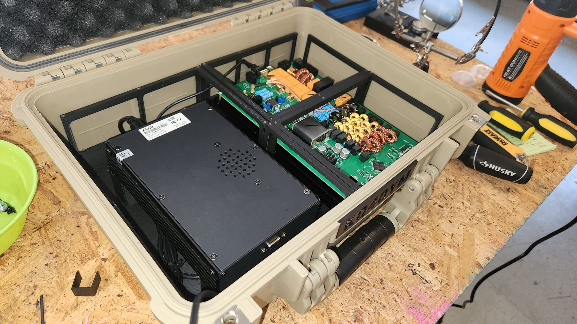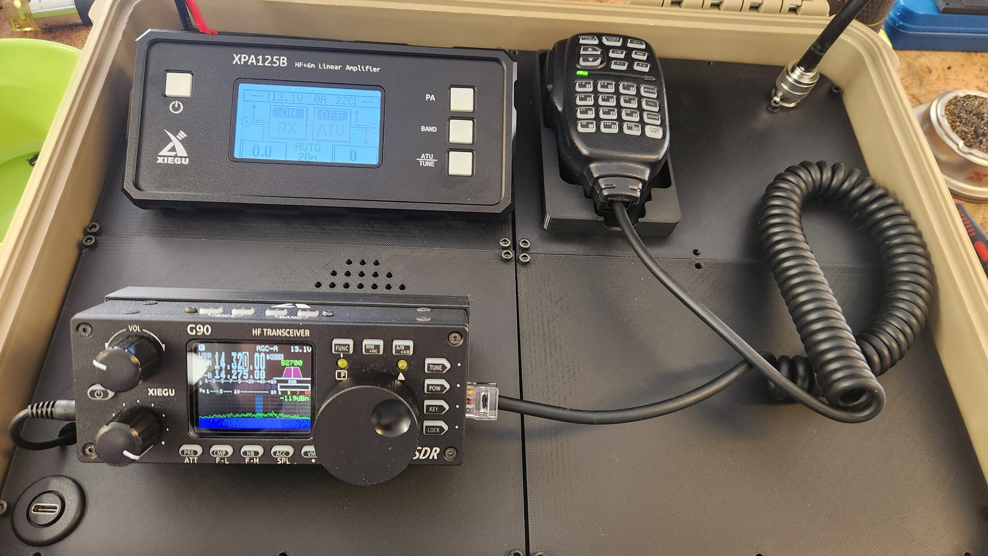 The challenge with any go box is the same: how do you pack a capable, full-featured HF station into something you can actually carry? This article documents my build — a 100-watt HF station based on the Xiegu G90 transceiver and Xiegu XPA125B linear amplifier, housed in an Apache 3800 carry case, with a fully 3D-printed internal structure. Everything you need to reproduce this build is here: parts lists, links, 3D files, wiring details, and lessons learned the hard way.