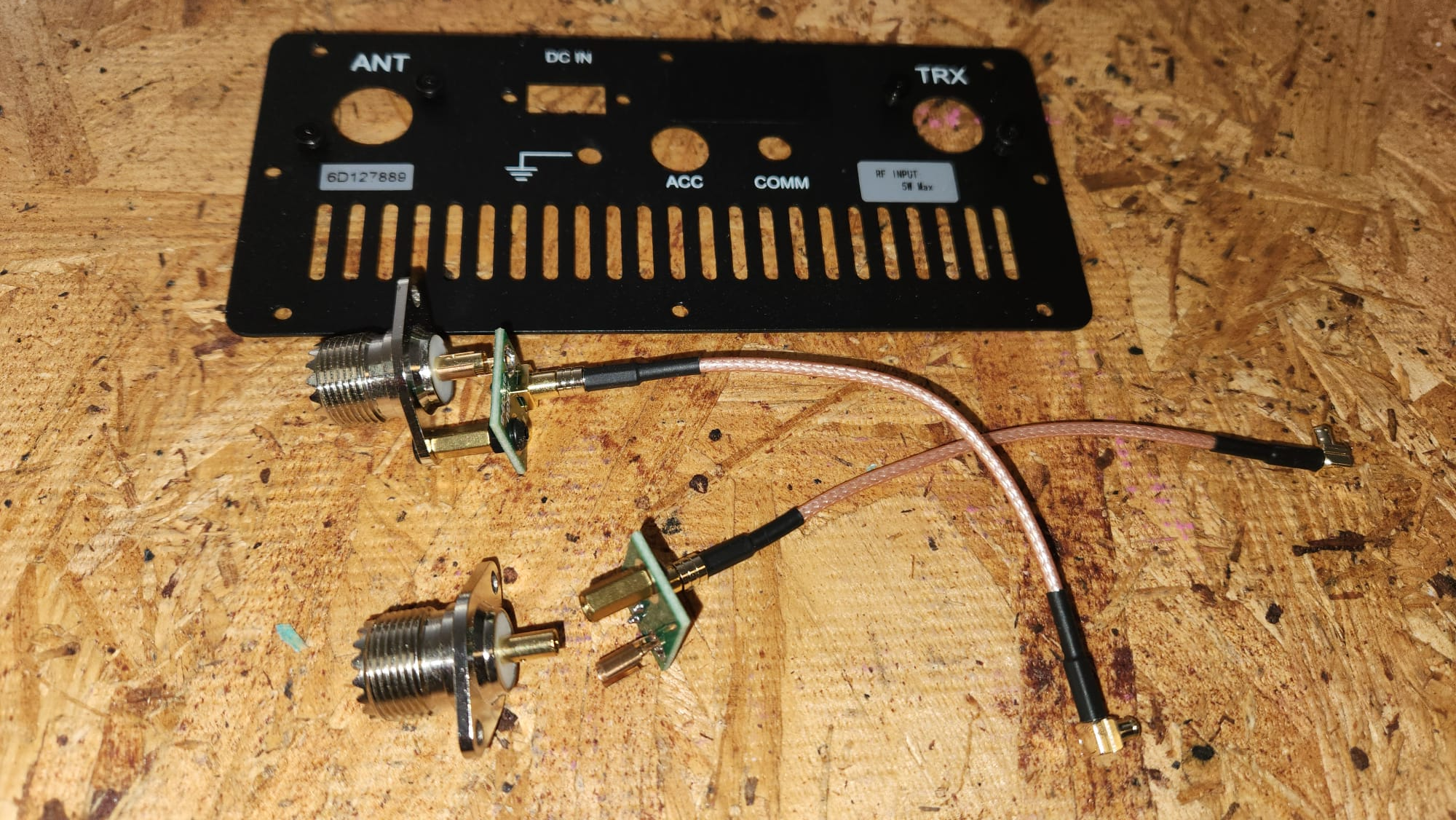 - Install panel connectors in the lid panel pieces: SO-239 antenna jack, Anderson Powerpole, USB-C panel mount.