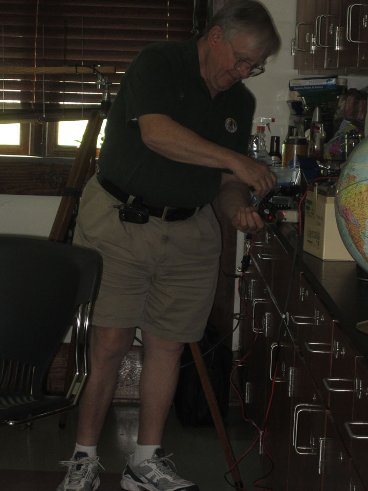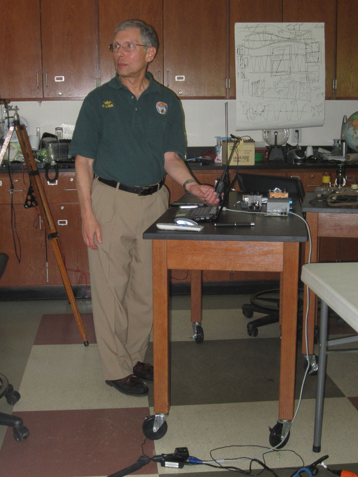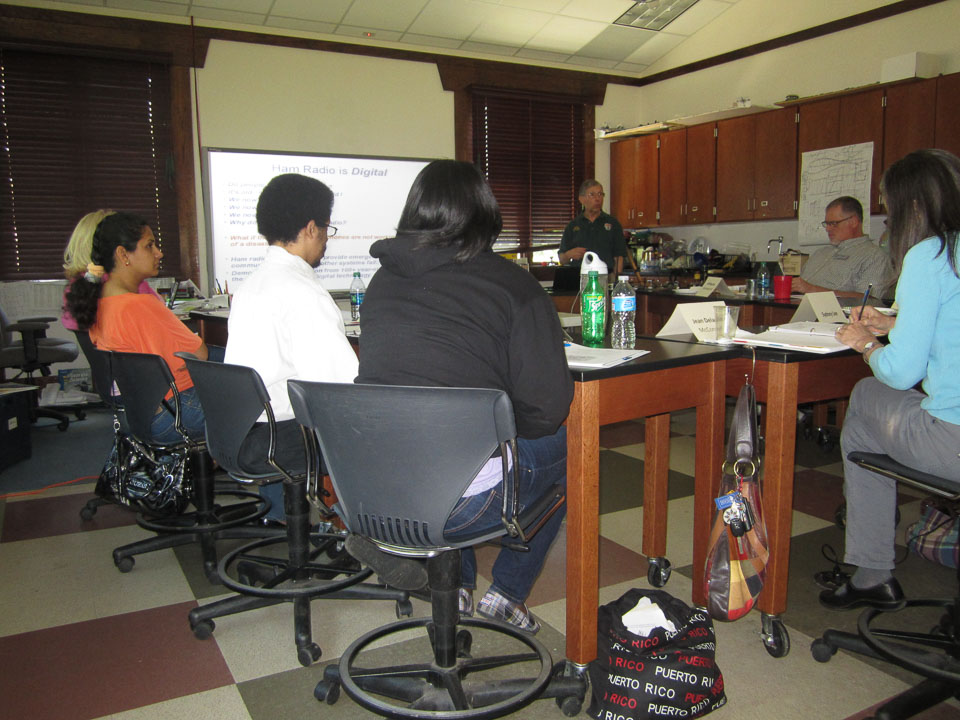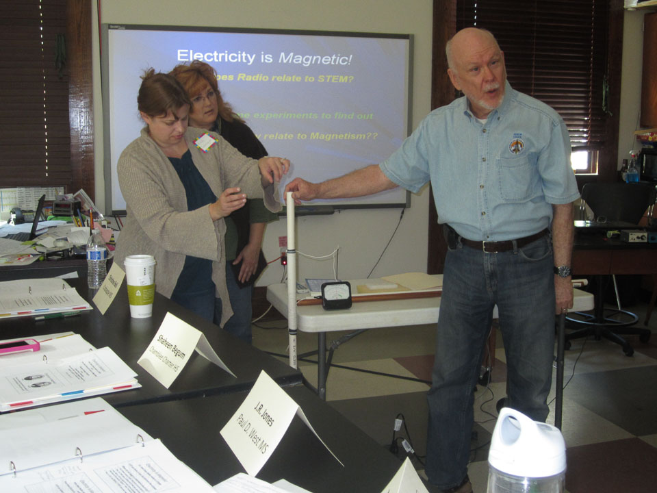 On Saturday, May 3rd, members of NFARL met with public school teachers, mainly from Fulton County schools, for a day long series of sessions to show them why and how to incorporate a variety of ham radio concepts into their classes. The workshop was held at Mill Springs Academy. Chuck Catledge, AE4CW, organized the program and also presented “Electricity is Magnetic,” a session showing the relationship between electricity and magnetism. Jim Stafford, W4QO, followed that with “What Makes Radios Tick?,” an introduction to the basic concepts and components of radios and antennas. Wes Lamboley, W3WL, presented a marvelous session entitled “Ham Radio = Science,” which correlated the Georgia Performance Standards, the state curriculum requirements for science classes, to ham radio.