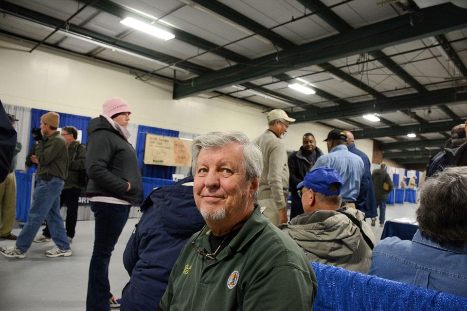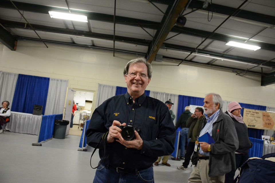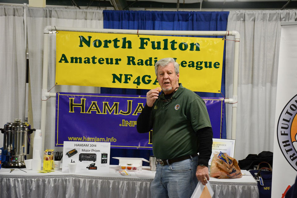 Jim W4QO takes time out from the NoGAQRP table to help promote HamJam
