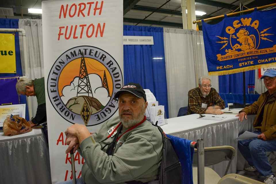 Norm WA4ZXV, who organized the hamfest for GARS and the Alford Memorial Radio Club, keeps an eye on activities. GREAT job, Norm!! Jim W4QO and Don WD4ON chat in the background.