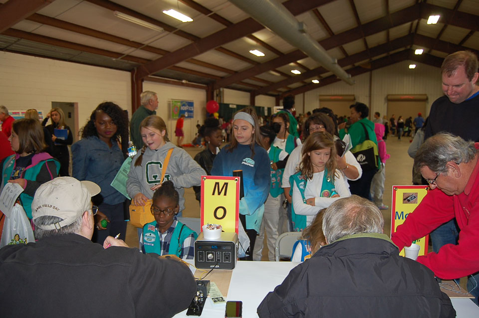 Thanks to all the volunteers (14 total!) from ARC, GARS, and NFARL, for putting on a very successful interactive booth at the 2016 event. The organizers sold out the 2300 advance tickets and were hoping that less than 300 more would walk-in. We were in the robotics building and did not see all the attendees, but we were busy all day and left with tired, but happy, feet. ARC provided the send your name in Morse Code station, GARS provided an HF station and multiple signs, poster, and flyers, and NFARL provided the new ARRL Girl Scout patch information along with a roving radio operator, an introduction to Lenz's law, crystal radio kits, and the spectrum allocation chart.