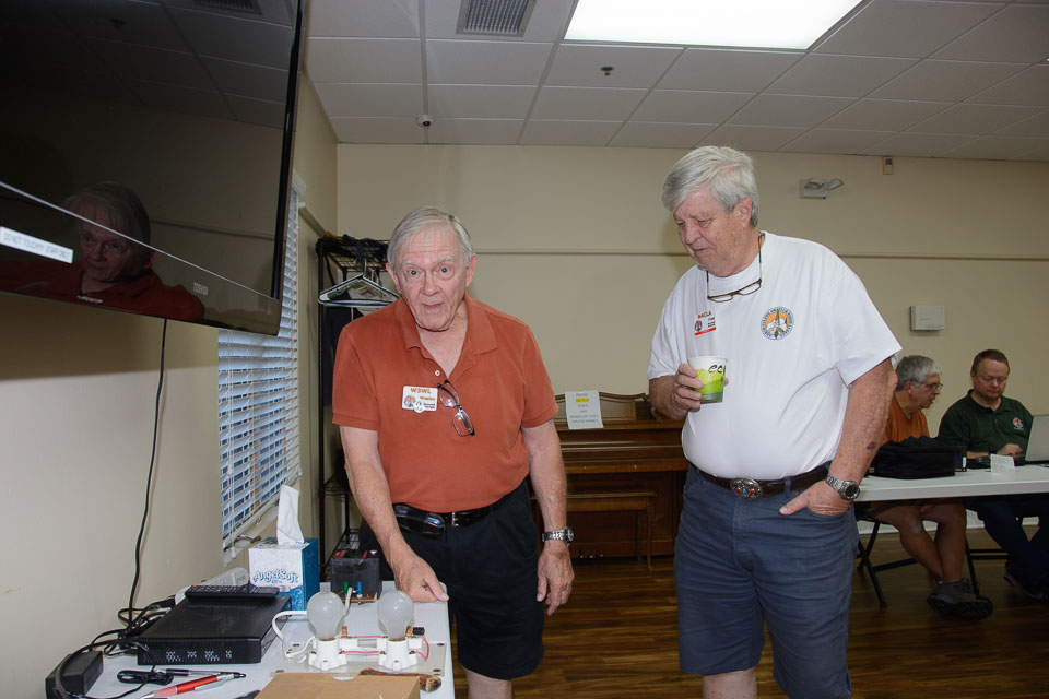 Club members and guests gathered at the Alpharetta Adult Activity Center on August 20th for our monthly meeting. The meeting included a double feature. Audrey McElroy, KM4BUN and her brother Jack, KM4ZIA presented "The Other End of the Pile-up: Our Story in Curacao. Dr. John Kludt, K4SQC followed the duo with "Some Thoughts on Amateur Satellites".