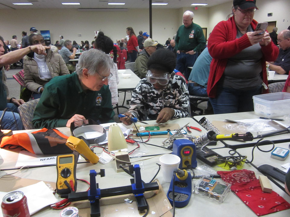 NFARL members gathered in Lawrenceville on January 18th at the Gwinnett Medical Resource Center on Duluth Highway to enjoy GARS 2020 TechFest and support our kit building activity. We staffed six kit building stations between 9:00AM and 2:00PM; attendees who stopped by built thirty-six kits, the last two of which were built from our parts bin. Thanks to Mike KN4OAK for a well organized activity and to Warren KD4Z and Jim W4QO for designing and creating the kits for us.
