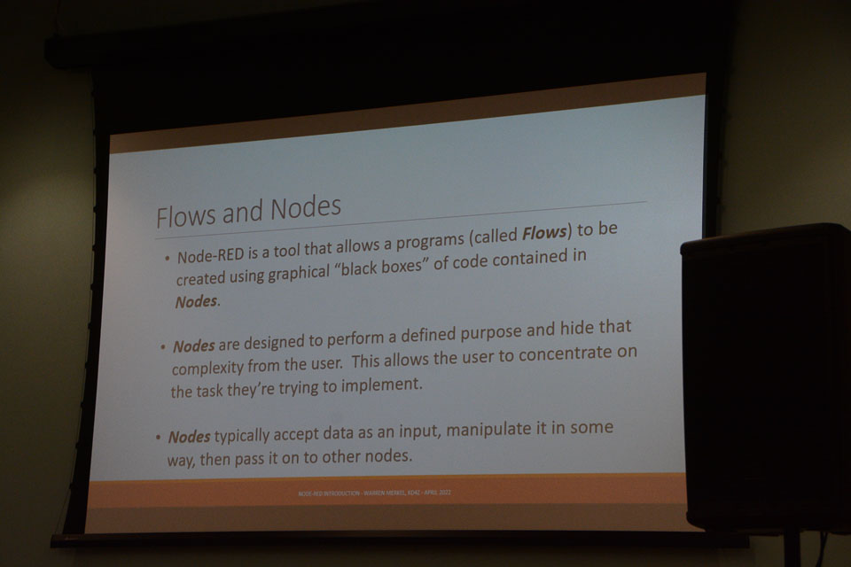 Club members gathered to celebrate another beautiful spring in Atlanta and hear Warren Merkle, KD4Z's presentation on Node-RED, a visual flow-based programming tool.