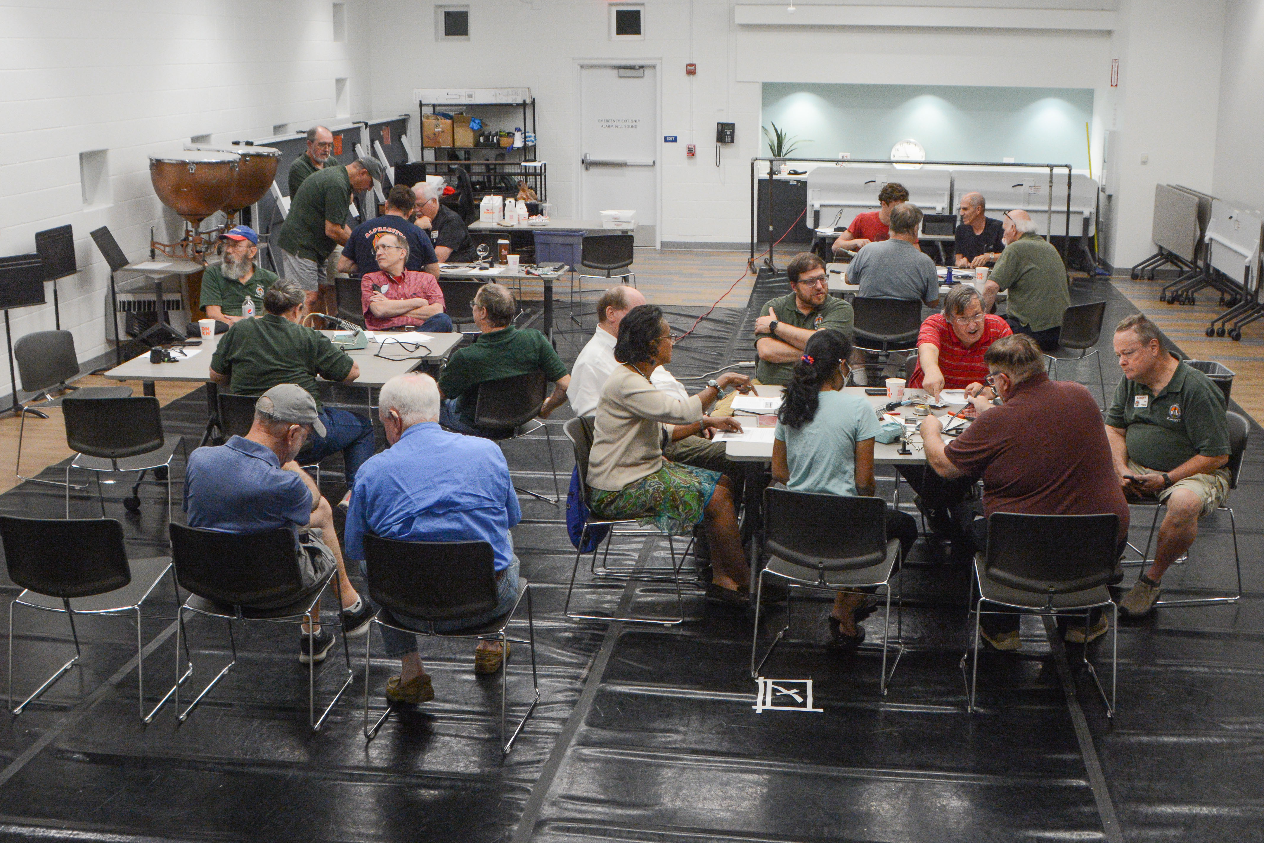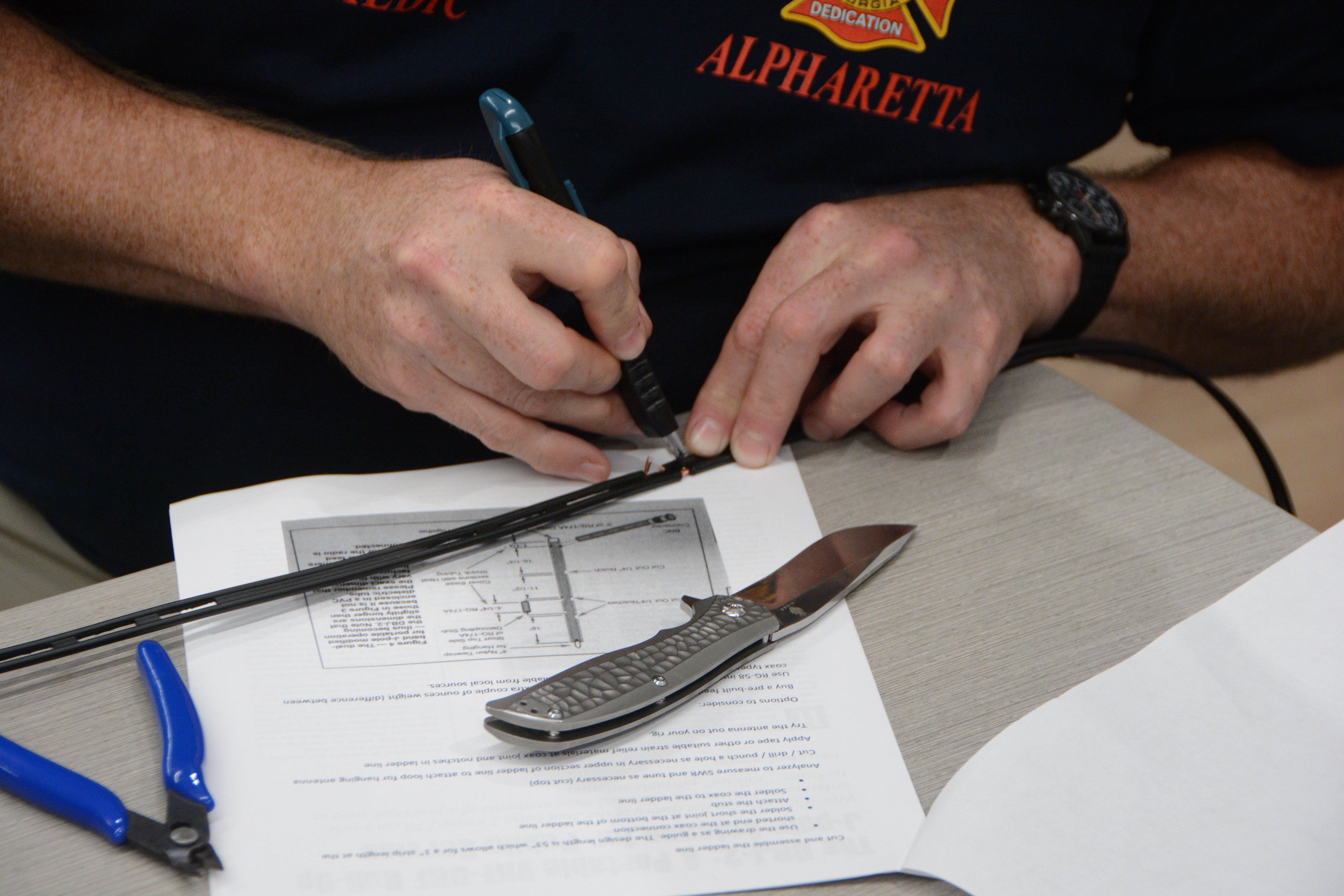 Our format this month was modified to accommodate construction taking place at the community center. We didn’t have a presentation or Zoom broadcast. Instead we explored what an antenna is and then broke into teams to build one. Each team built a roll-up dipole antenna suitable for use on 2M and 70cm.